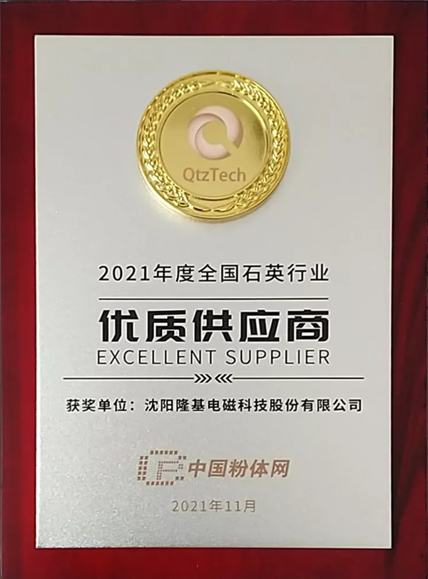 2021全國石英大會(huì)頒獎(jiǎng)典禮隆重舉行,隆基電磁獲得“2021年度全國石英行業(yè)優(yōu)質(zhì)供應(yīng)商”稱號(hào)。