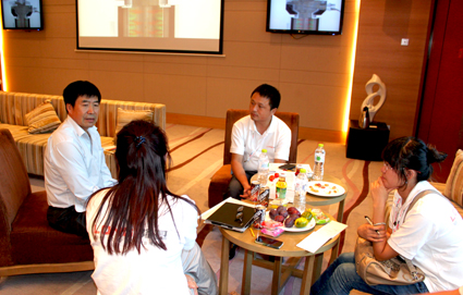 參會嘉賓造訪隆基礦樣圖片展區與技術人員詳談