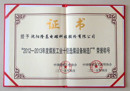 早在2010年10月,隆基就獲得了“2009年度煤炭工業(yè)十佳選煤設(shè)備制造廠(chǎng)”稱(chēng)號(hào),是磁性裝備制造行業(yè)中唯一入選單位。本次獲獎(jiǎng)是隆基第二次獲此殊榮,也是行業(yè)內(nèi)唯一獲此榮譽(yù)的單位。會(huì)議還表彰了2014年度中國(guó)煤炭工業(yè)協(xié)會(huì)科學(xué)技術(shù)特等獎(jiǎng)和一等獎(jiǎng)的獲獎(jiǎng)項(xiàng)目和個(gè)人、首屆中國(guó)煤炭工業(yè)專(zhuān)利獎(jiǎng)、2012-2013年度煤炭工業(yè)十佳選煤廠(chǎng)、十佳選煤廠(chǎng)廠(chǎng)長(zhǎng)和煤炭工業(yè)節(jié)能減排先進(jìn)企業(yè)(單位)和先進(jìn)個(gè)人。