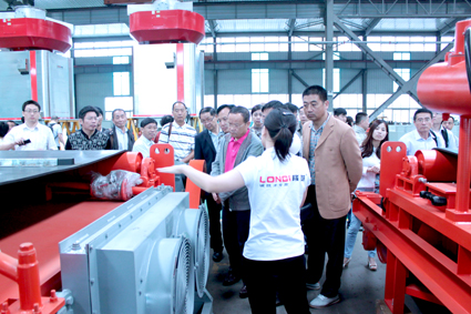 隆基向來訪代表們講解設(shè)備研發(fā)生產(chǎn)過程