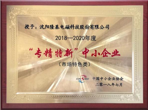 近日,2018“小企業•大夢想”高峰論壇暨第六屆中國中小企業投融資交易會在國家會議中心拉開帷幕。會議上公布了全國首批通過“專精特新”中小企業資質認定的企業,沈陽隆基榜上有名,榮獲市場特色類“專精特新”中小企業榮譽稱號,全國僅有10家企業獲此殊榮。