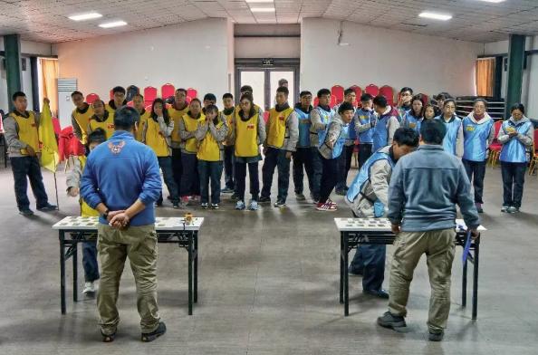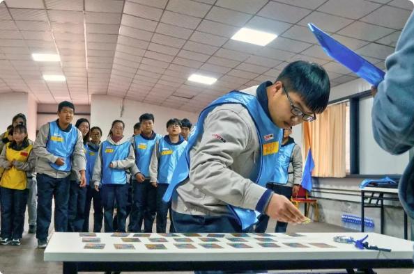 撲克翻牌:這是一場配合上的角逐,既考驗著大家的默契和耐心,也考驗著隊長的協調能力與擔當。所有隊員都發揮創新意識,共商方案,共渡難關。一次次失敗重來、一次次加油打氣,大家為了隊里的榮譽而努力,展現出了強烈的責任感與團隊意識。