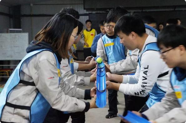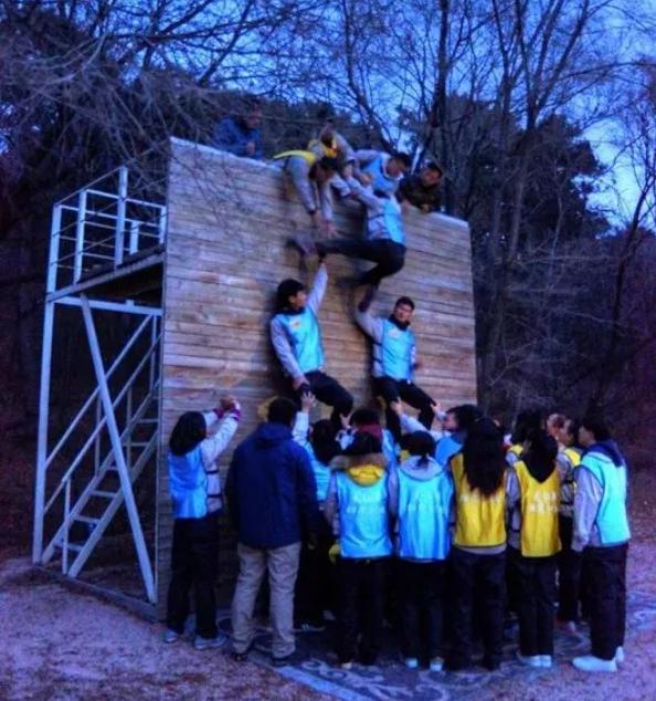 畢業墻:拓展活動的最后環節,需要全體隊員合力翻越一面4米高的墻。隊員唯一能借助的,只有自己的身體和雙手,協助隊員翻越高墻。光滑的墻面,沒有任何輔助,對毫無訓練經驗的隊員而言,困難可想而知。隊員們用身體搭起“人梯”,讓伙伴們踩著自己的肩膀攀爬翻過,再疼、再累,大家都咬緊牙關堅持,抱著堅定的信念,誓讓全體隊友通關。看似不可能完成的挑戰,在團隊的力量面前卻完成了。“之所以能完成這么高難度的挑戰,是因為在這一刻我們都有強烈的團隊觀念,對團隊的力量有認同感。把這種理念帶到工作中,相信我們的工作沒有戰勝不了的困難。"
