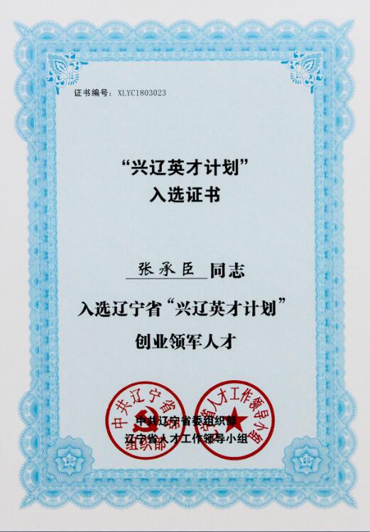 此次成功入選,是政府對張承臣董事長在創業領域所做出的貢獻給予的肯定與支持。張承臣董事長本人也多次獲得遼寧省優秀專家、市先進個人、市優秀企業家等稱號。