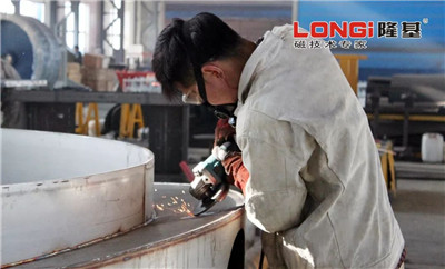 今年6月,一批出口的立環磁選機正在緊張的焊接中,客戶方為了監控質量特意飛到中國,想在生產過程中實地查看。當他看到產品一條條飽滿美觀的焊道時,連連稱贊,圍著設備拍下了二十余張細節照片,并表示通過這次參觀,對隆基制造,甚至中國制造的品質有了全新的認識,對雙方的合作更加憧憬。