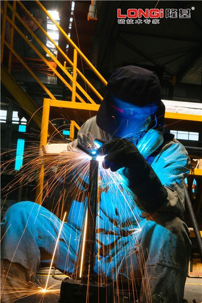8斤重的焊服、500℃的火花飛濺,他們一氣呵成,不留任何瑕疵,他們用行動和付出彰顯隆基人的品質和擔當。