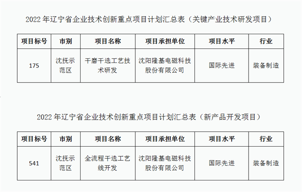 遼寧省企業技術創新重點項目評選結果正式公布,隆基“干磨干選工藝技術研發”、“全流程干選工藝線開發”上榜,隆基科技創新成績單再添重磅榮譽,高質量發展動力澎湃!