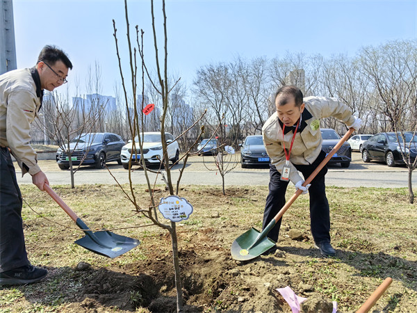 公司高層領導與各部門員工齊心協力,化身“護林人”,共同投入到這項綠色行動中。大家領取樹木,揮鍬鏟土、扶樹正苗、提水澆灌、掛心愿卡,一系列動作流暢而有序。經過一番辛勤勞動,150株樹苗在和煦的春風中昂然挺立,為這片土地注入新的生機與活力。