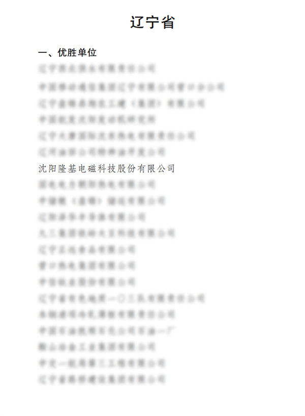 中華全國總工會、應急管理部、國家衛生健康委員會聯合發文表彰全國“安康杯”競賽先進集體和優秀個人。沈陽隆基電磁科技股份有限公司榮獲全國“安康杯”競賽優勝單位稱號。